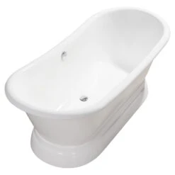 Featuring gorgeous curves and a freestanding base, the Riley Double Slipper Bathtub was made to stand out. Take full advantage of the double-slipper design, which allows you to lean back and relax at either end. Sitting on an elegant pedestal the Riley Cast Iron Tub will bring a lifetime of comfort and satisfaction.