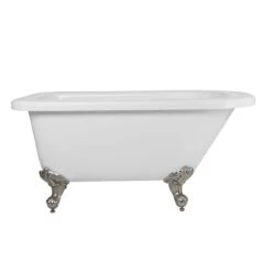 With Victorian-era charm. the Savanna Classic Clawfoot Tub takes you back in time. This roll-top tub features intricately detailed imperial ball and claw feet and a high-gloss, stain-resistant acrylic construction that offers all the benefits of a cast iron tub without the weight. Pair the Savanna Tub with a freestanding English telephone faucet to complete the look.