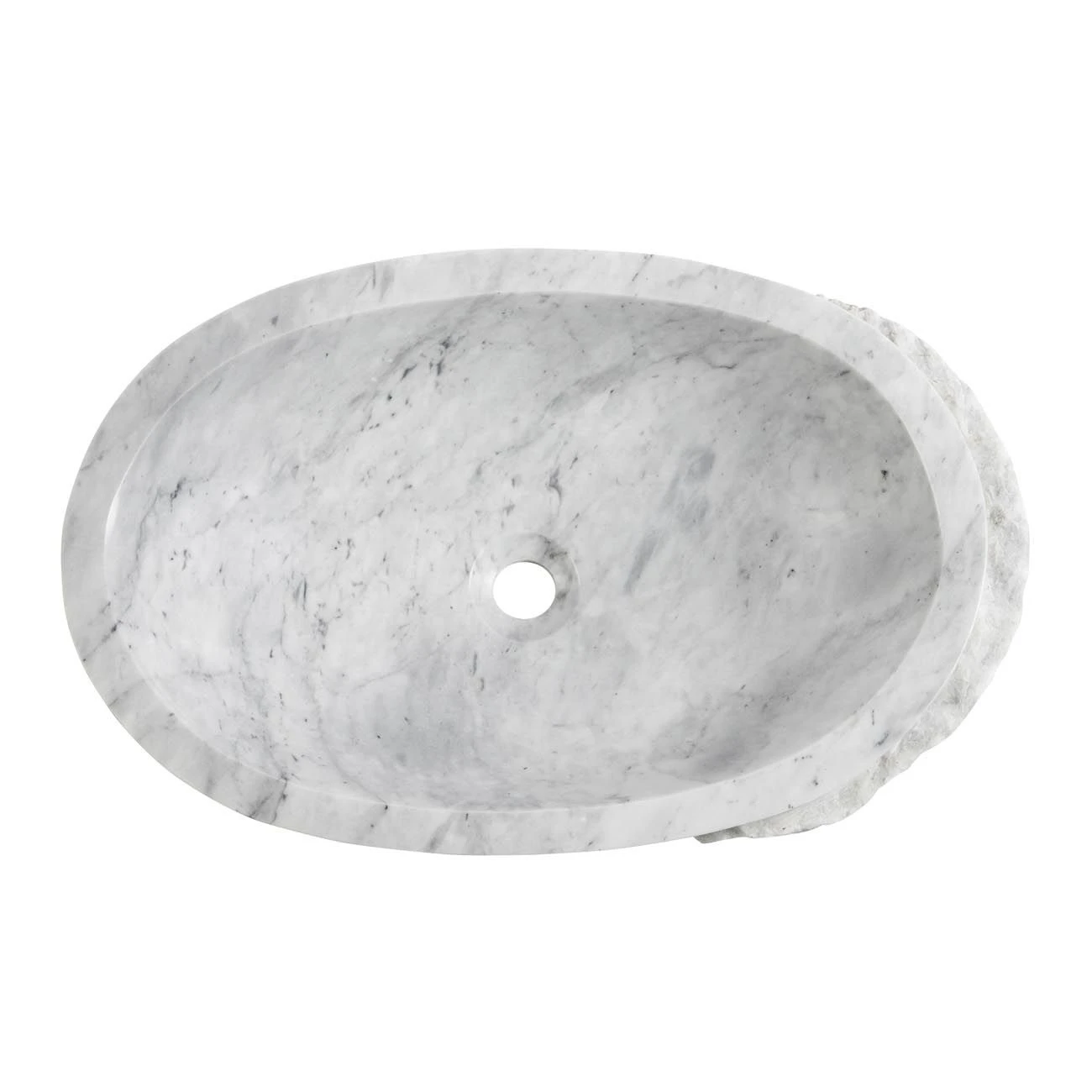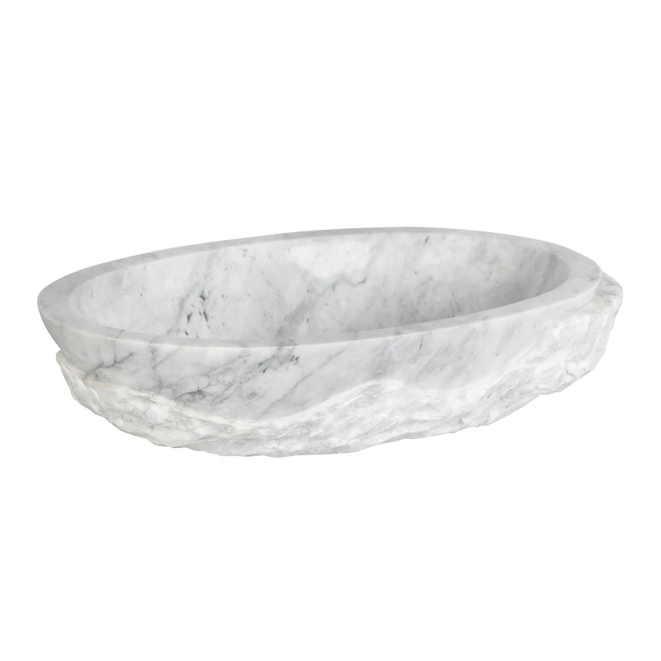 The Taft Vessel Sink will be a luxurious upgrade for your master bathroom. Made from hand-carved natural marble, this stone bathroom sink features a smooth interior and a chiseled exterior. Because they’re hand-carved, each sink is one of a kind and will have variations in color, shading, and veining.