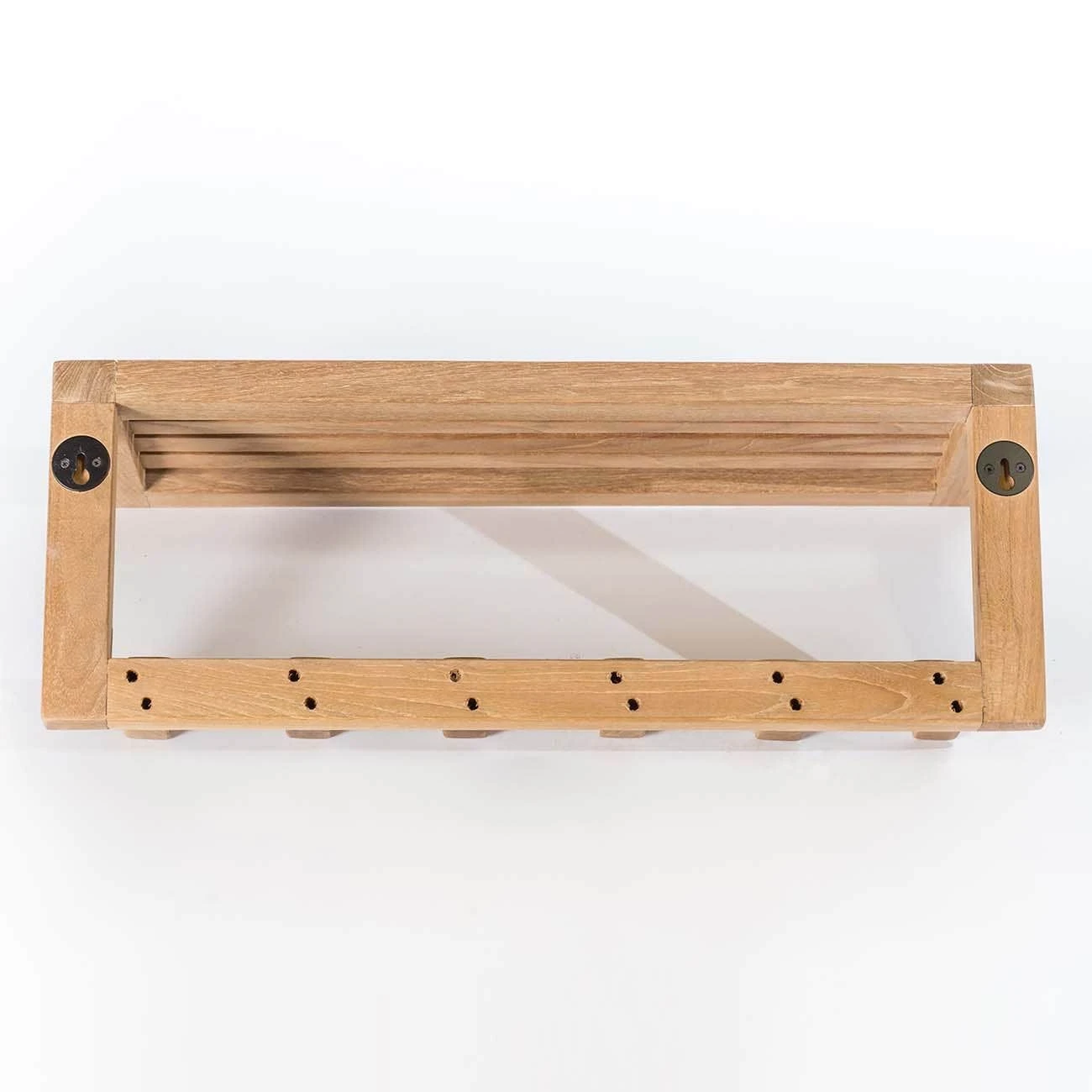 No closet at the front door? No problem. Bring function and organization to your entryway with ARB Teak’s Wall Shelf with Hooks. This piece fits into any style of decor due to its natural wood tones and its simple design.