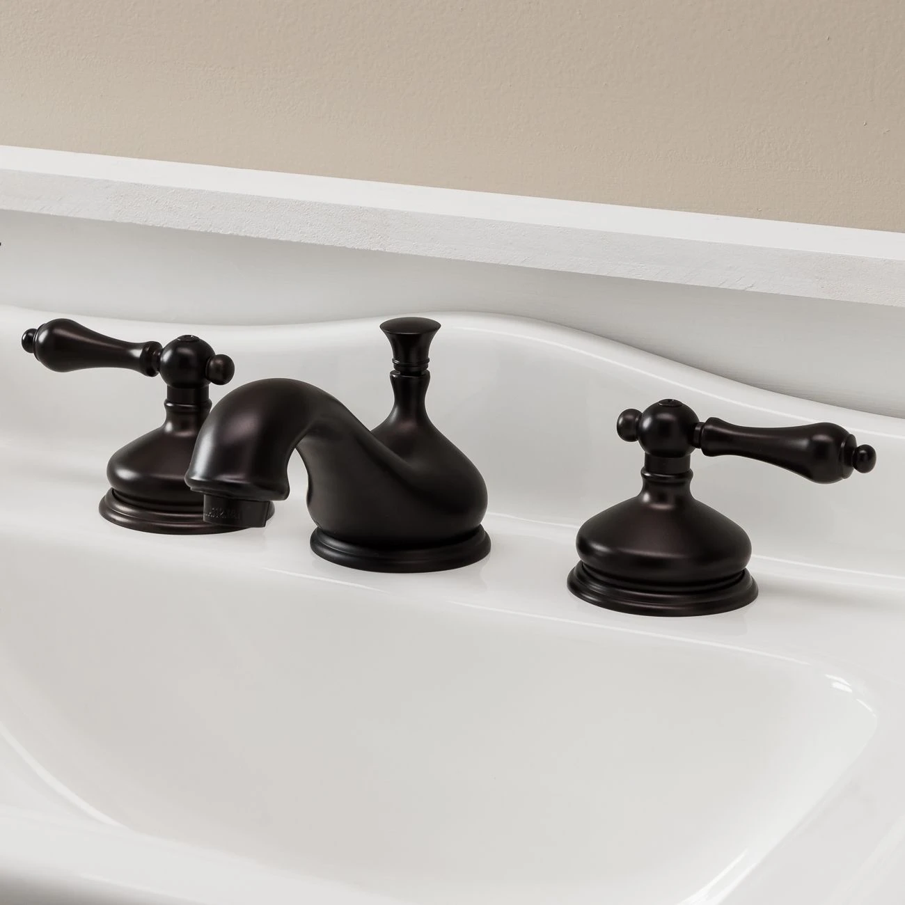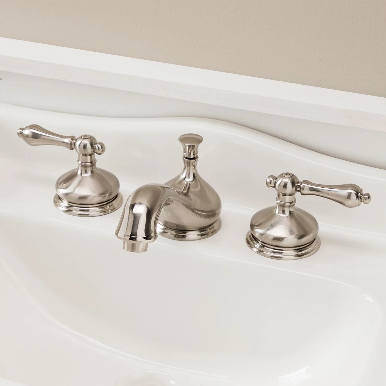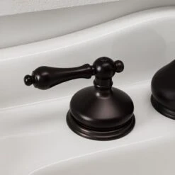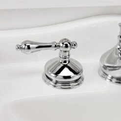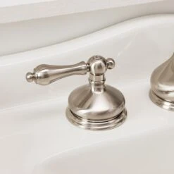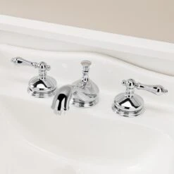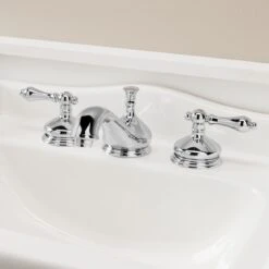 Wide escutcheons and a curvaceous spout make the teapot widespread bathroom sink faucet look and feel especially luxurious. Features include convenient hot and cold metal lever handles, as well as a pop-up drain assembly. This faucet would be a great addition to a pedestal sink or a sink vanity of your choice.