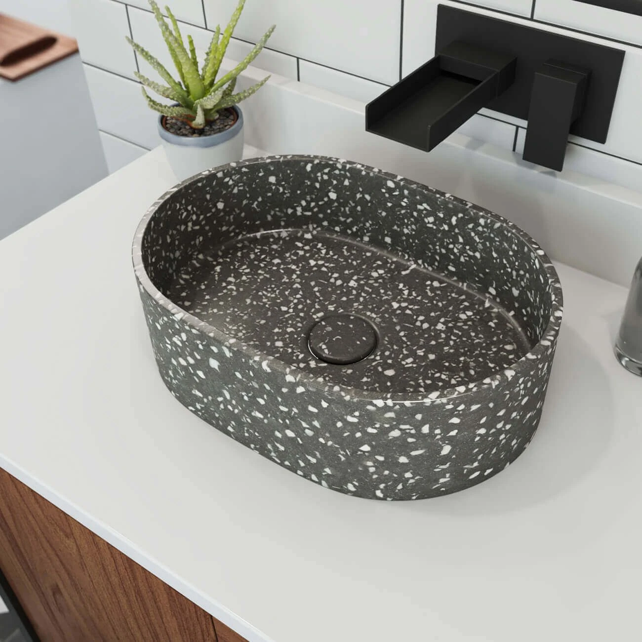 - Comes with matching drain