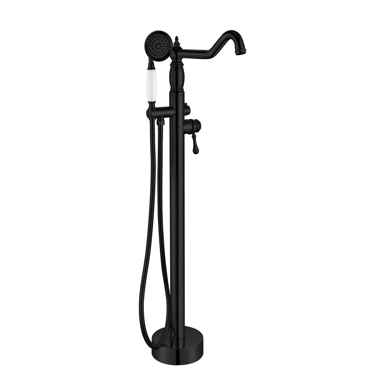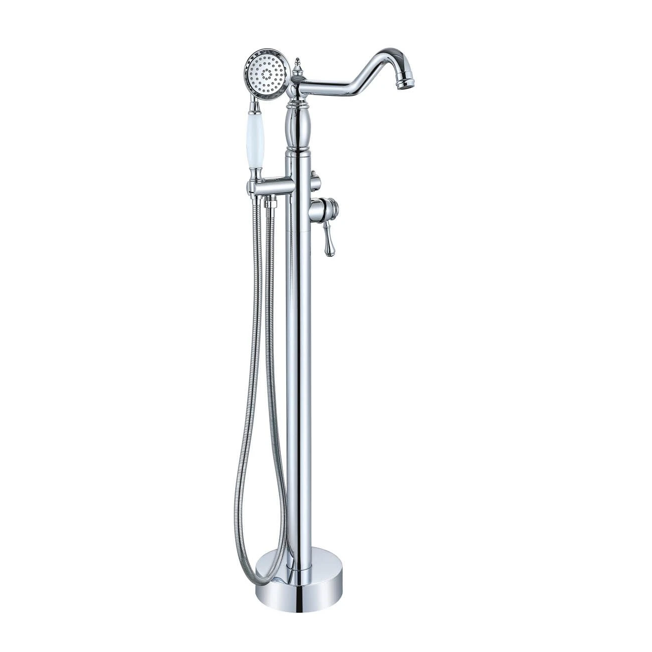 A simple, single-post, freestanding tub faucet makes for a lovely addition to your spa-like bath, with a slightly hooked faucet that adds visual interest to an otherwise minimalist design. A traditional freestanding tub faucet, this model is available in a range of neutral and metallic premium finishes engineered to resist tarnish and corrosion.