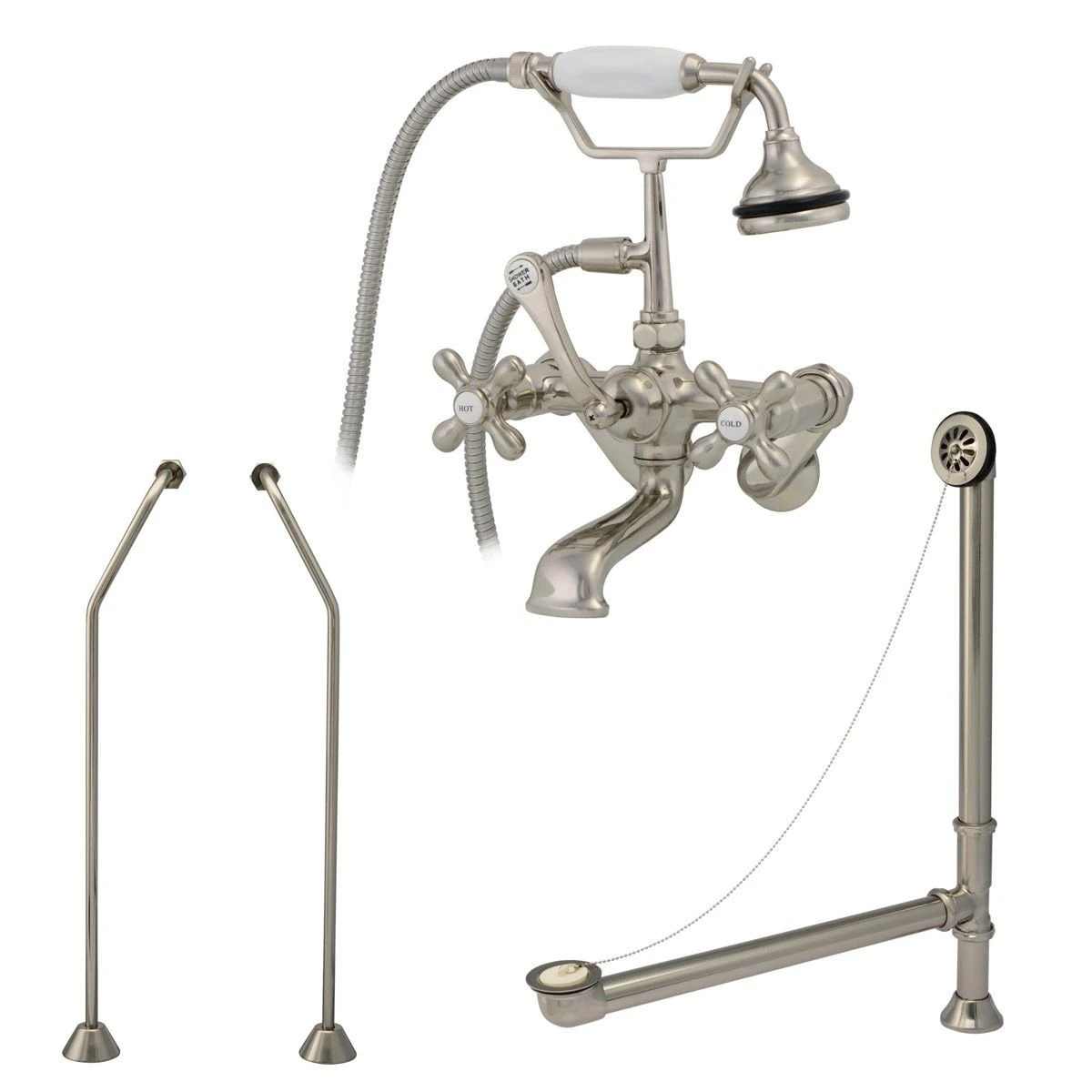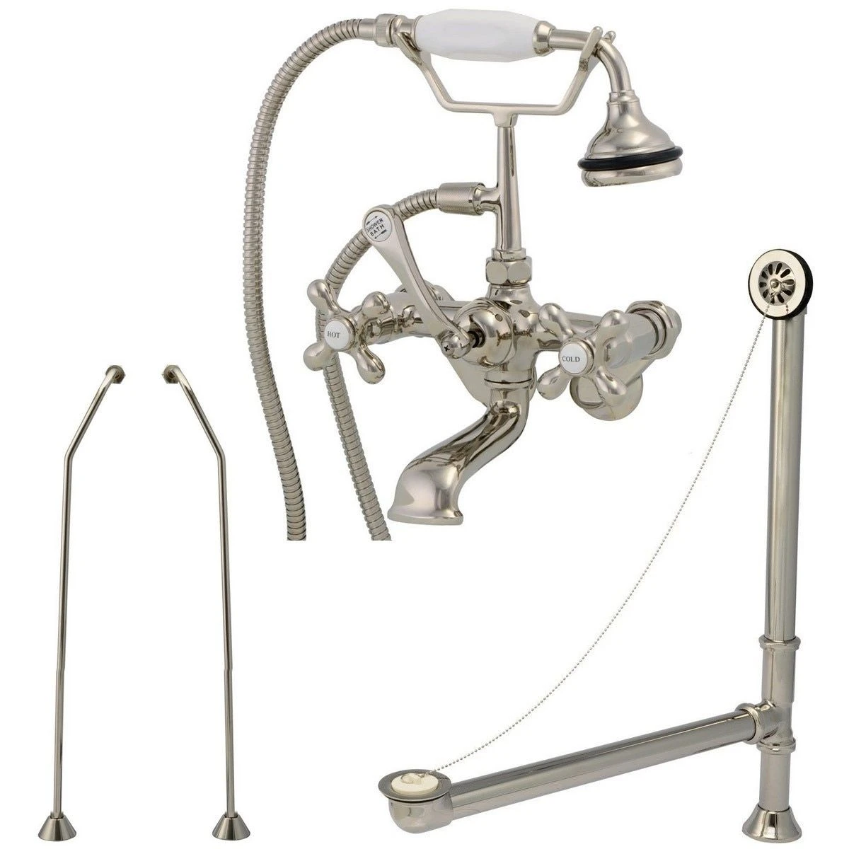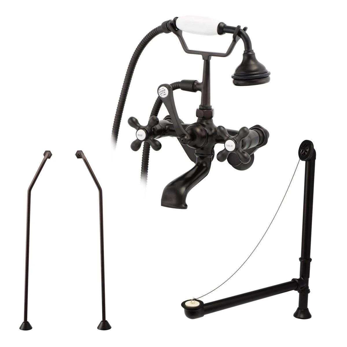 - Set includes: Clawfoot Tub Faucet with Hand Shower, Chain and Stopper Tub Drain, and Double Offset Supply Lines