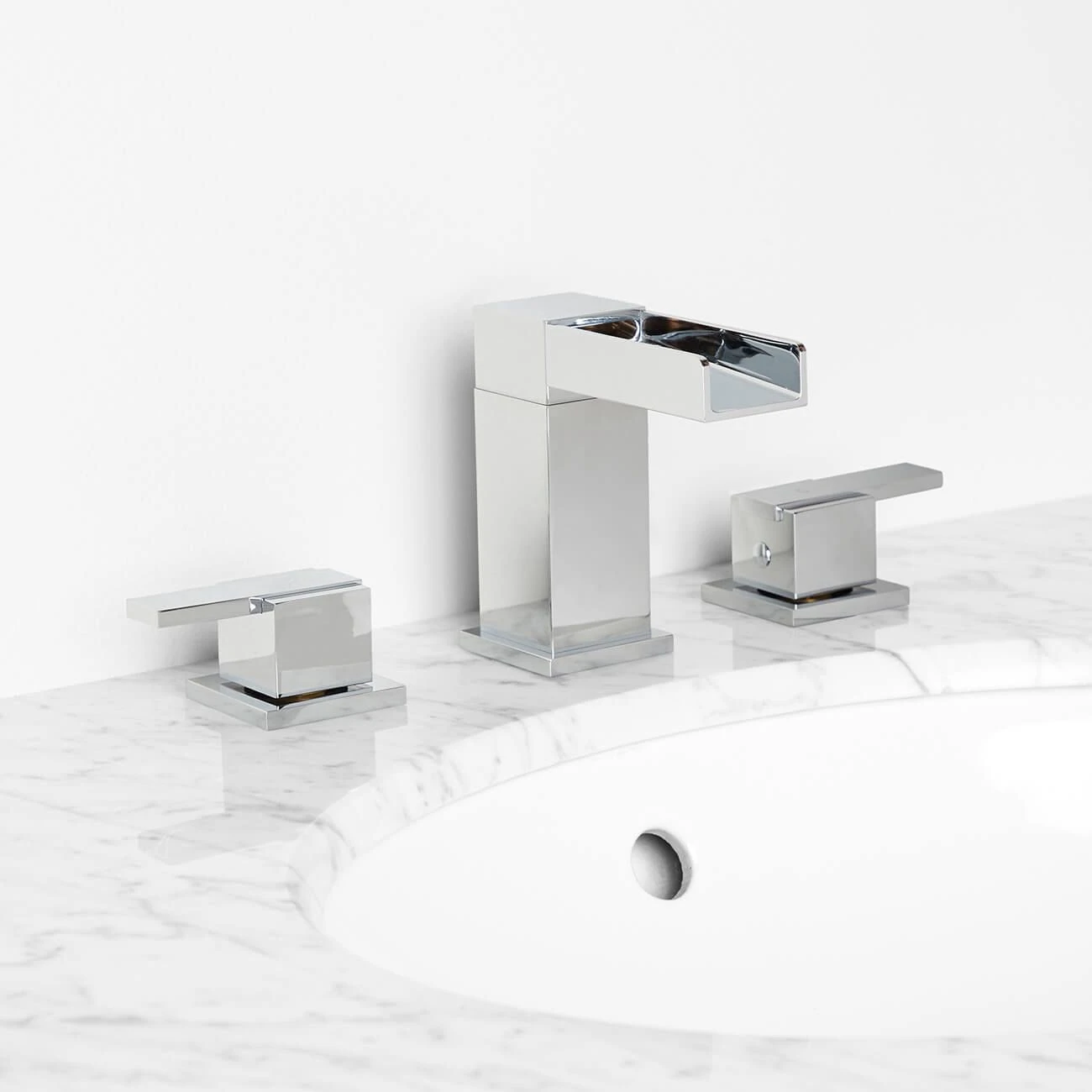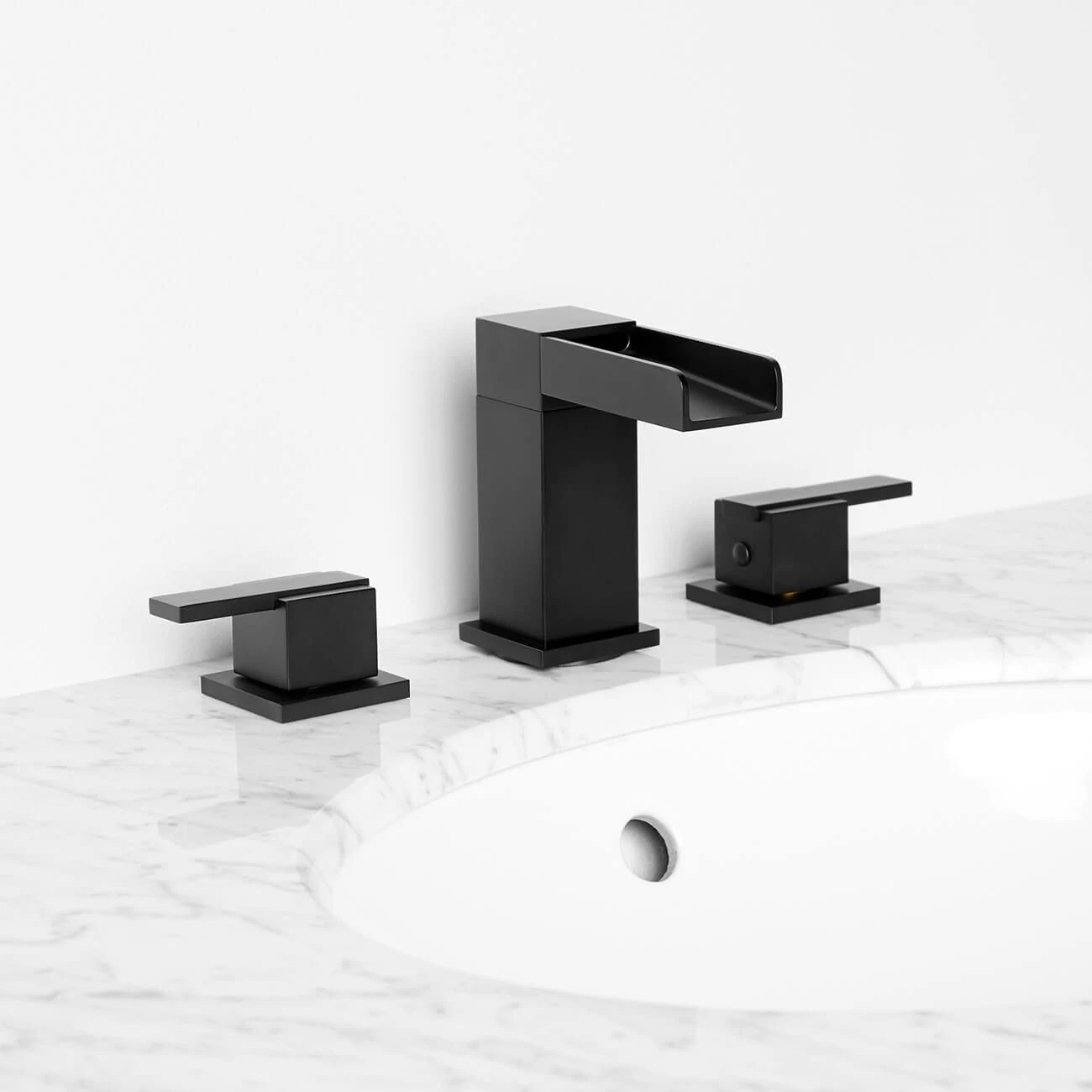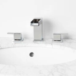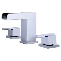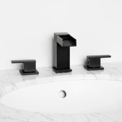 Featuring a beautiful waterfall spout, this widespread bathroom faucet offers a modern update for your space. Made of solid brass, this faucet ensures lasting beauty and durability, holding up to the demands of everyday use.