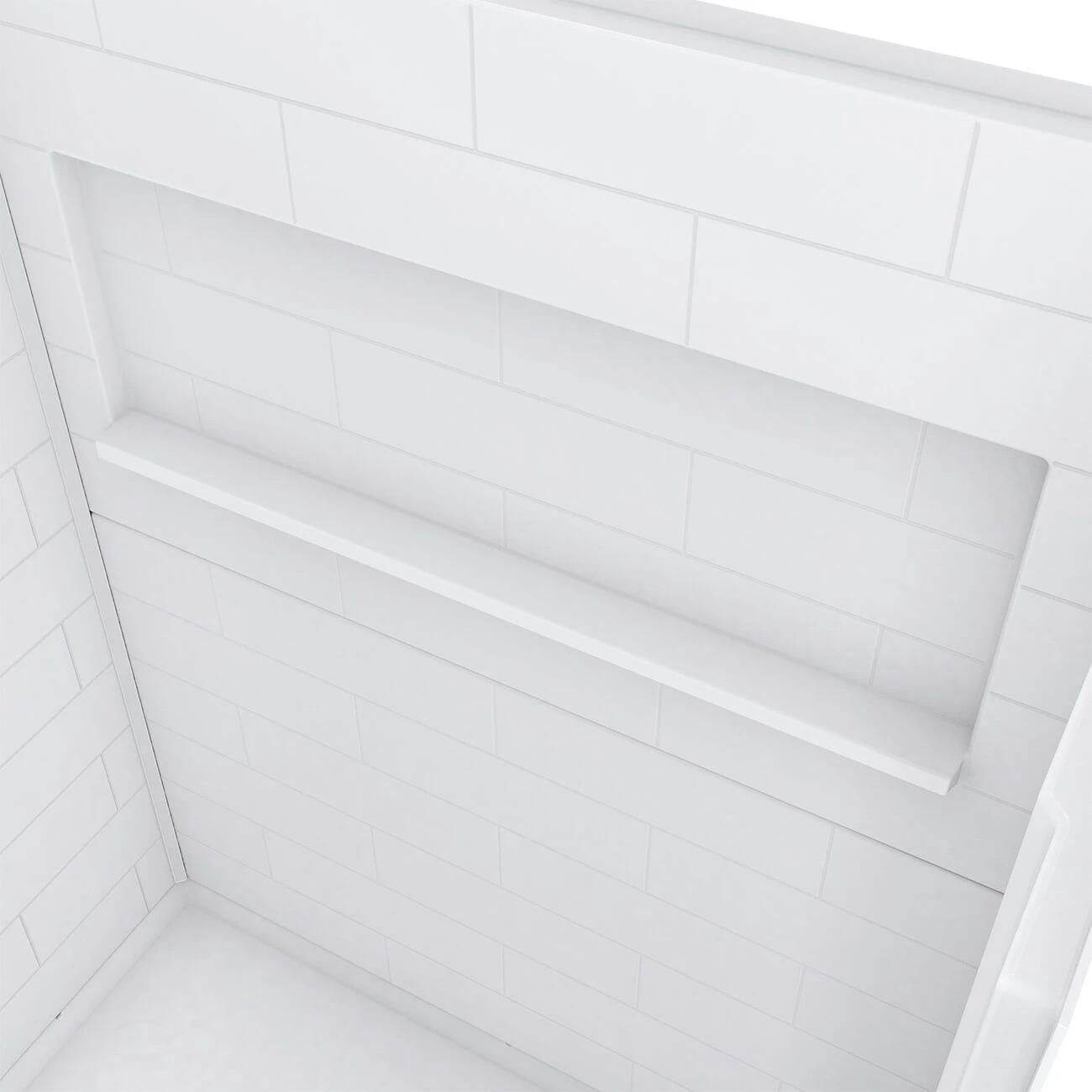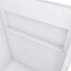 This right drain shower with curbless, beveled entry from Renovate Bath is ideal for safe, convenient walk-in and roll-in functionality. The attractive subway tile design adds timeless appeal, especially when paired with the optional rainfall shower head. Slip-resistant flooring, an expansive shelving niche, and an adaptive design make for a safe and accommodating accessible shower.