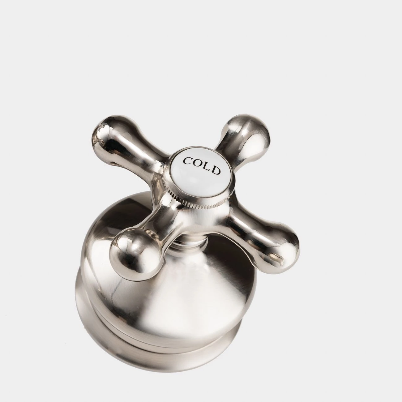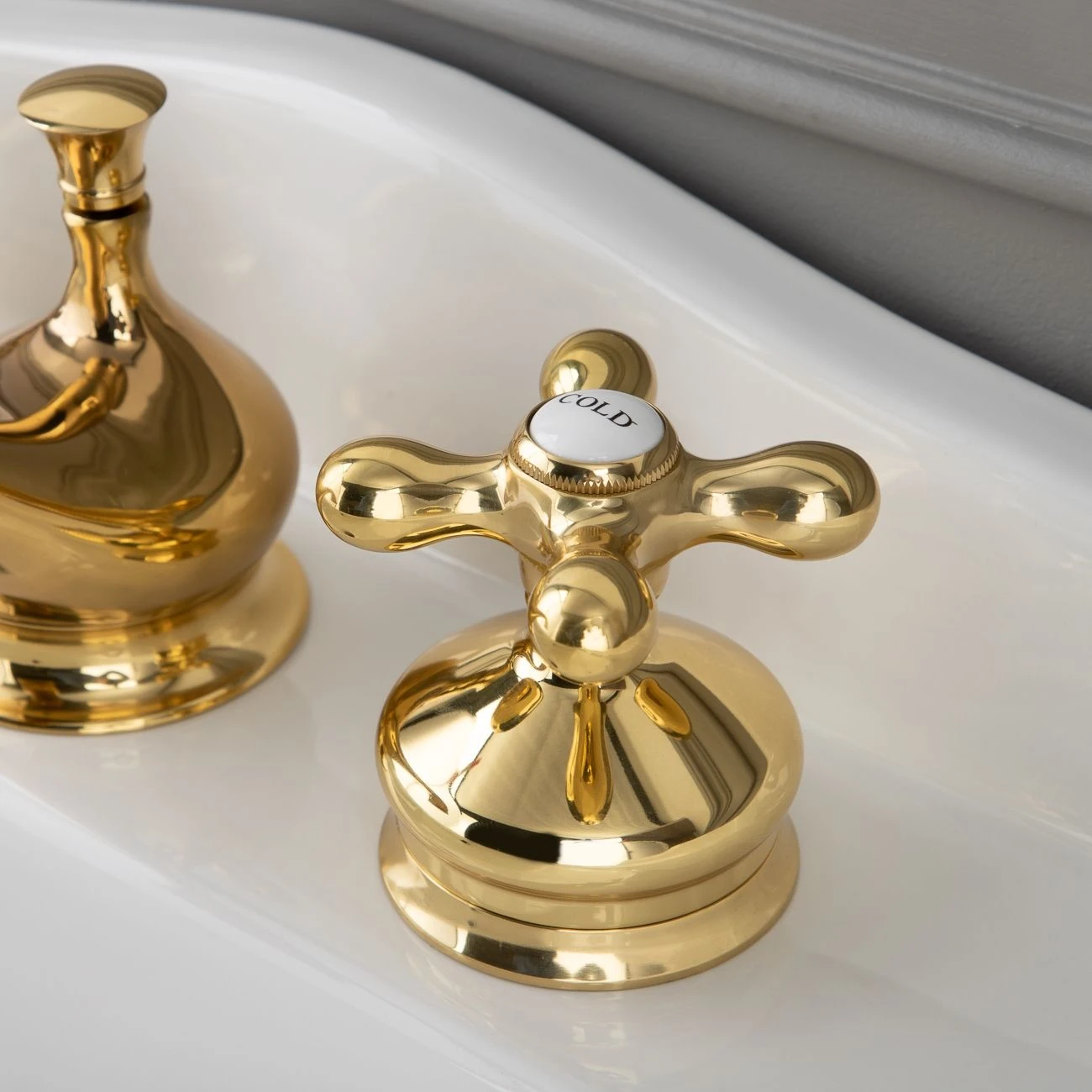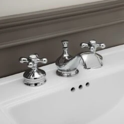 Randolph Morris delivers a beautiful faucet and comfortable cross handles with porcelain accents with this widespread bathroom sink faucet. The shapely spout and matching pop-up drain offer a stylish design for your pedestal sink, console sink, or bathroom vanity.